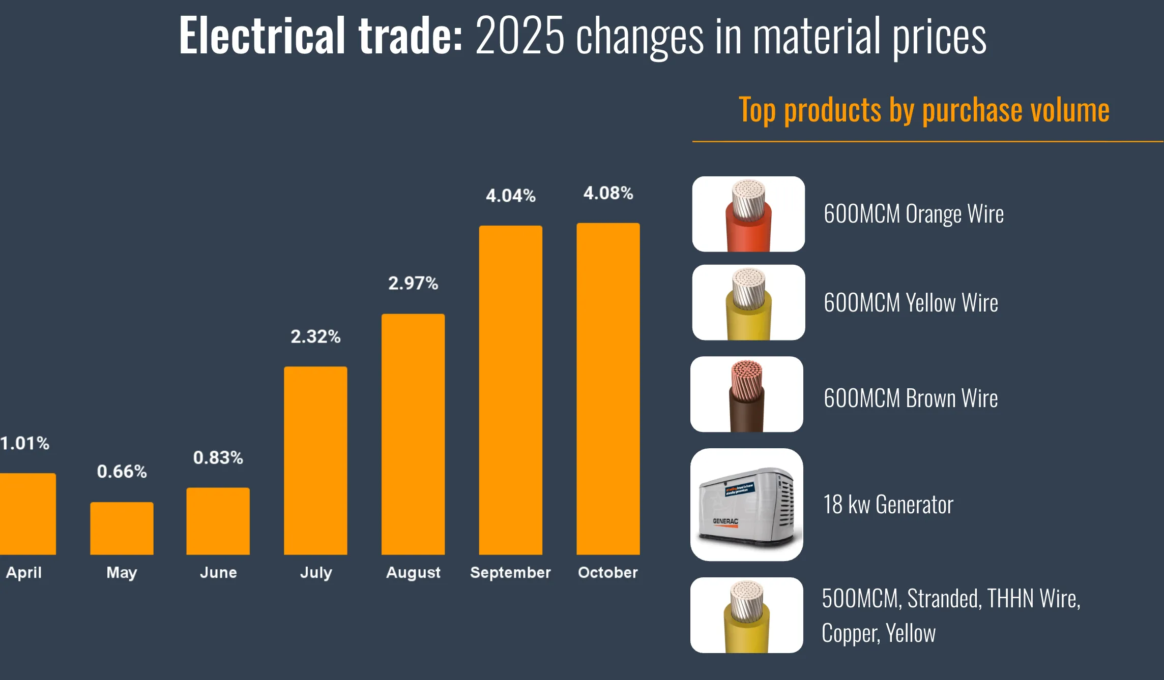 - Electrical Crew: You've been on a roller coaster. Overall, prices are up about 4%, but that doesn't tell the whole story. They actually dipped in the spring, then spiked hard once summer hit. You gotta watch your backside with this stuff.